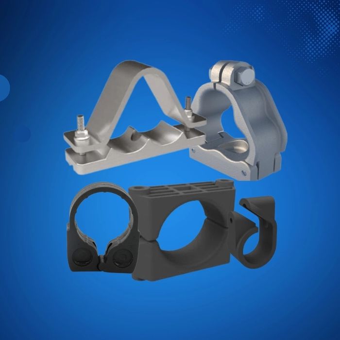 Polyethylene Single Bolt Cleats: Made from Black LLDPE, these are cost-effective, UV-resistant, and unaffected by corrosive environments. Ideal for standard installations with cable diameters from 9mm to 52mm.